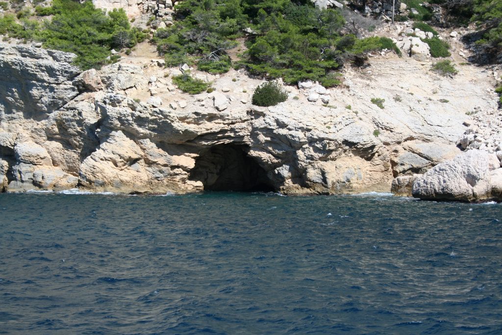 L’Œil de verre se trouve dans la calanque de Saint-Jean-de-Dieu ou de l’Œil de Verre.